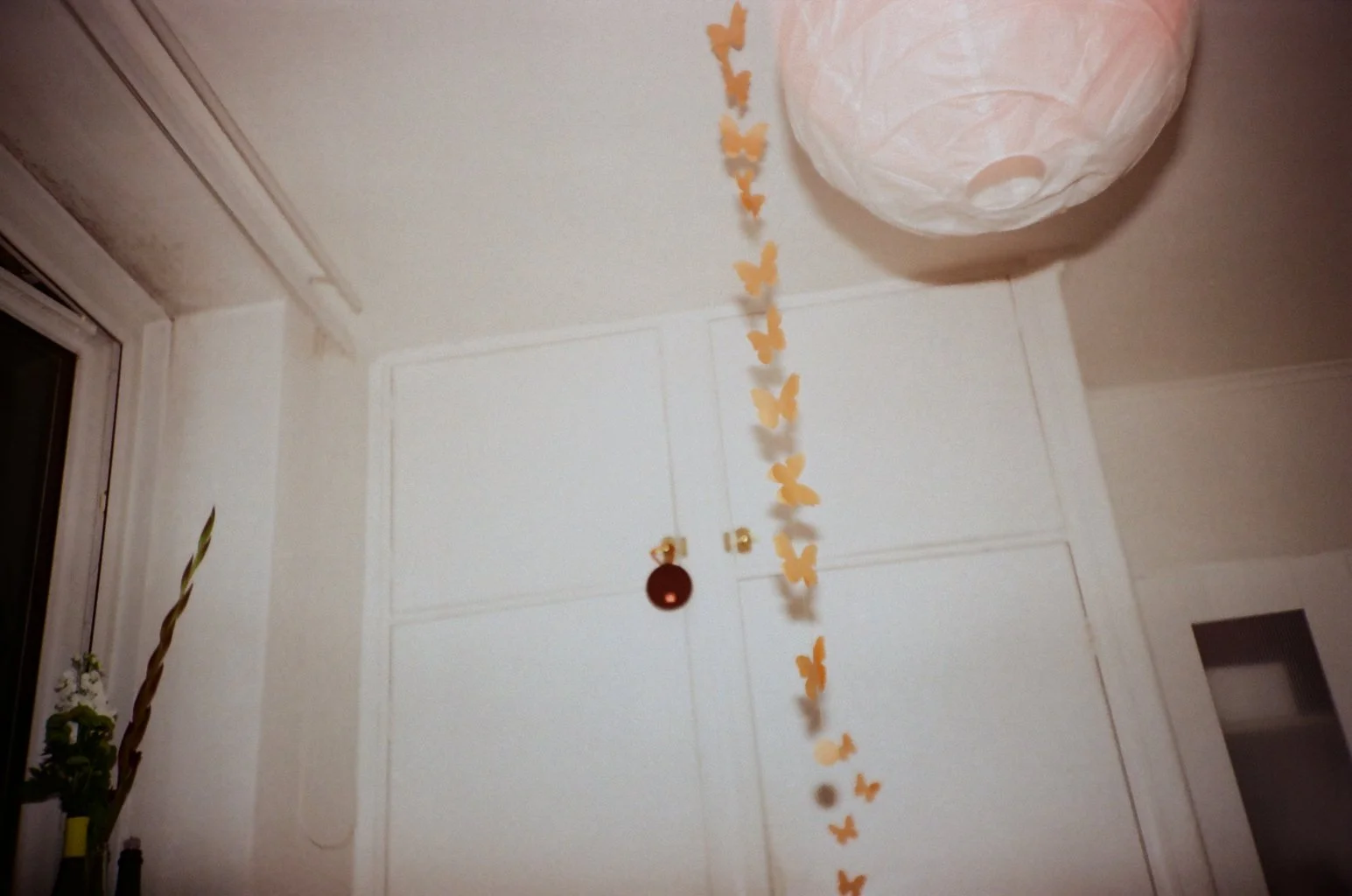 There's an English term, "social butterfly," which refers to someone who is very sociable and has many friends—the type we often call a popular person. Bo has an abundance of friends and is always actively interacting with them, which made me think of her as a butterfly freely fluttering from place to place. So for the room decor, I decided to create a mobile in the shape of butterflies.
